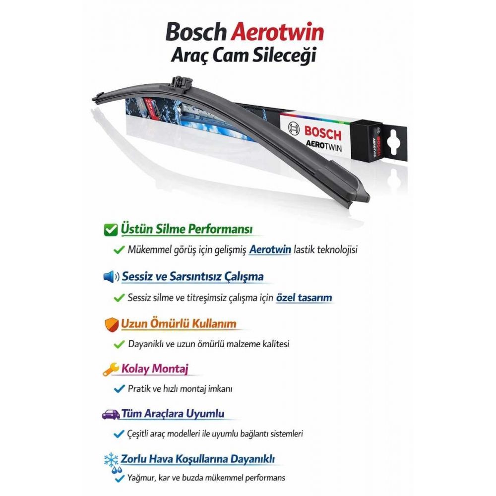 Bosch Aerotwin Plus AP500U 500mm ön cam sileceği, üstün silme performansı ve dayanıklı yapısı ile zorlu hava koşullarında maksimum görüş sağlar. Flat blade (çerçevesiz) aerodinamik tasarımı sayesinde yüksek hızlarda cam yüzeyine tam temas eder, titreşim yapmaz ve iz bırakmadan temizlik sunar.