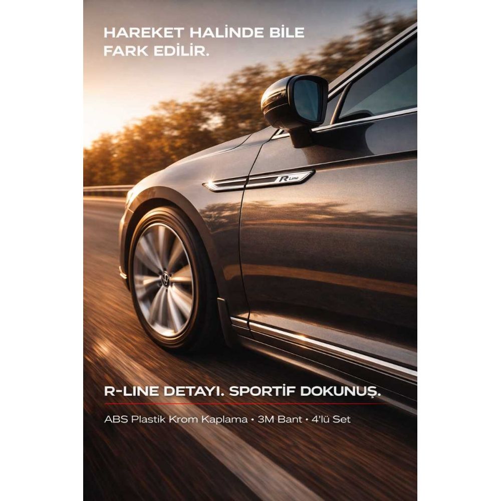 R-Line 4’lü Çamurluk Logo Seti, Volkswagen Passat B8 modelleri için özel ölçülerde tasarlanmış olup aracınıza fabrika çıkışı görünümünde şık bir dokunuş sağlar.