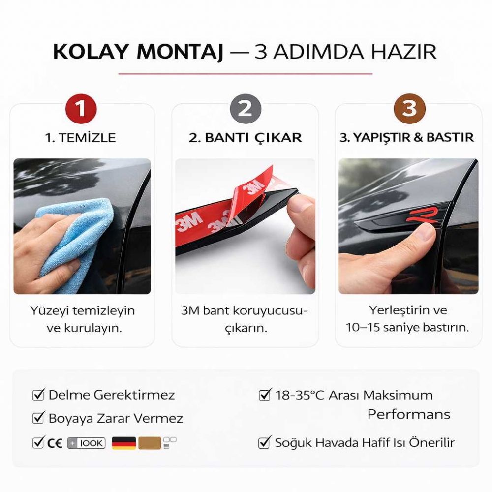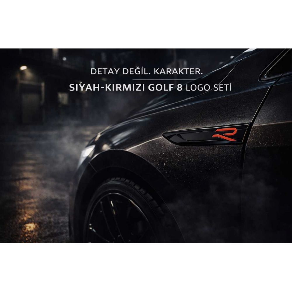 Siyah-Kırmızı tasarımlı 2’li Çamurluk Logo Seti, Golf 8’in modern çizgilerine agresif ve premium bir dokunuş kazandırır. OEM stil ölçülerde tasarlanmış yapısı sayesinde aracınıza fabrika çıkışı görünümüne yakın bir estetik sağlar.