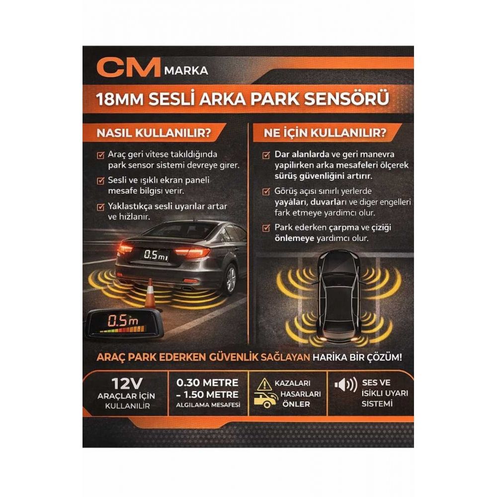 Aracınızı güvenle park etmek ve manevra sırasında riskleri azaltmak için CM 18mm Siyah Sesli Arka Park Sensörü doğru tercihtir.